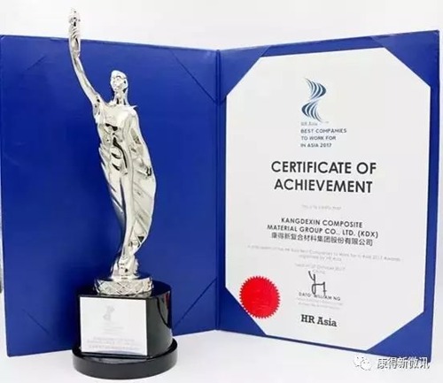 2017年10月27日,HR Asia Awards “亚洲最佳企业雇主奖” (Best Companies to Work forin Asia)揭晓。158家中外优秀企业获得提名,最终康得新与施耐德电气、爱立信、毕马威、奥美、李锦记等28家全球化企业荣登榜单。亚洲最佳企业雇主奖是亚洲地区最权威的企业管理奖项之一,2017年首次在中国举办。竞争可谓激烈,荣誉弥足珍贵。