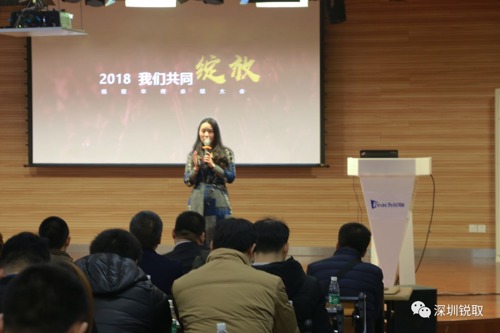 2018年2月2日,锐取召开年终总结大会。会上,锐取董事长张秋、副总经理廖海、副总经理侯大鹏及市场总监吴蕾,回顾2017,展望2018。