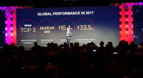 其实这已经不是TCL第一次成为2018年彩电行业热议的话题明星。在1月初结束的国际消费类电子展览会(即CES)上,TCL便引起了全球媒体关注。此次CES TCL不仅展示了最新的X5、C6、P5三大系列产品,以及围绕QLED量子点技术与AI技术为核心的未来科技布局等内容。在CES全球发布会上,TCL集团副总裁、TCL多媒体CEO王成还公布了去年全年营业数据:2017年TCL多媒体累计LCD电视销售量达到了23,231,141台,同比增长16.4%,实现五年来最强劲增长。其中北美市场表现突出,全年销量同比增长131.5%。另外,TCL在2016年底便突破了2000万台销售量位列全球前三,到2017年再度超额完成全年销售目标,稳坐了全球彩电行业前三的宝座。