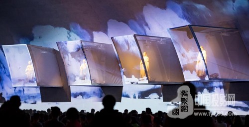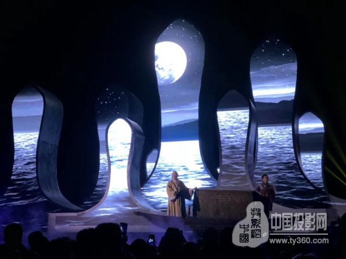 作为该项目实景演出的视频工程商,赢康为莲花剧场精心设计了投影方案。剧场内部的主要舞台背景由十几个片状纱幕拼接组成,投影机将画面分别投射在纱幕和地面上,使分离的纱幕和地面浑然一体,随着故事的不断发展,投影画面频繁变化,不同角度,不同时空,配合剧场旋转多次使用,使整场演出声声入耳,幕幕惊心,叹为观止。