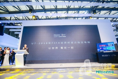 3月8日,上海AWE展首日,海信隆重发布了2018世界杯全新定制产品U7系列ULED超画质电视。U7是海信应用全球研发资源开发设计的全球化产品,并将在全球80个国家和地区上市销售。