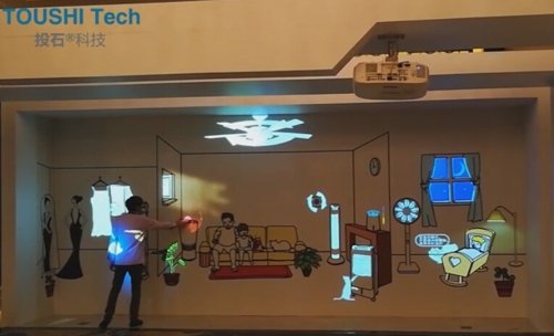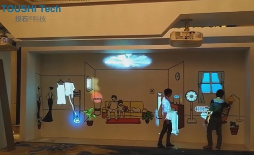 其中美的环境电器墙面互动投影就是南京投石科技把此项技术应用于智能家居的案例。