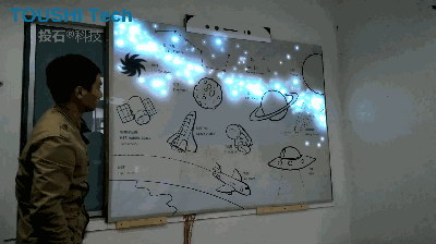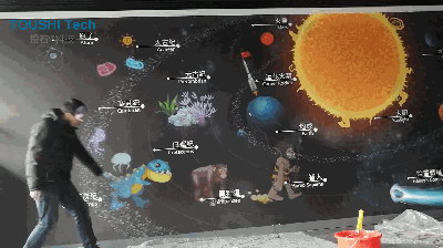 案例一:在为杭州高级中学钱江校区天文地理综合创新实验室墙面互动投影触摸布项目中,南京投石科技就利用此项技术将枯燥乏味的书本知识转换为生动有趣的太空探密。