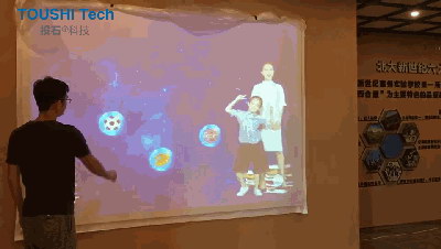 杭州萧山机器人小镇触摸布互动投影就是此技术在展览方面的一个应用案例。
