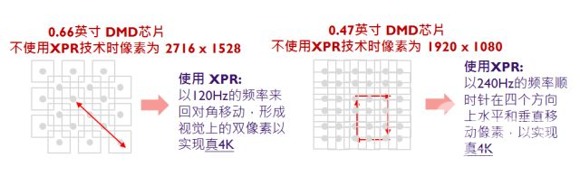 但在2017年美国德州仪器推出了一种更为现代的真4K技术——XPR像素位移技术,可实现真4K的830万像素。