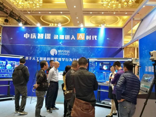 此次大会上,协会表彰了20余家荣获2018年数字校园应用优秀方案的企业。中庆智课方案得到了协会及中央电化教育馆评委专家的高度认可,并在最终评选中获得全国数字校园应用方案优秀奖。同期举行的观摩“数字校园整体解决方案”展示活动,中庆展位展现了人工智能在教育中的应用成果,许多用户在听了周总报告后到展位详细了解、体验智课产品。中庆展位吸引了众多参展嘉宾驻足询问。