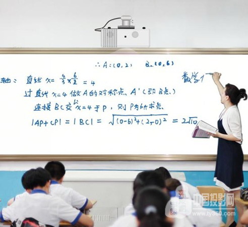 那爱学习的同学可能就要问了,做到这么短的距离意义在哪呢?意义重大,首先在课堂上,投影仪可以直接吊装在讲台上方,贴近墙壁投射下来,老师上课不会被强烈的投影光线刺到眼睛,而且也不会遮挡光线,在屏幕上留下阴影影响同学们记笔记。