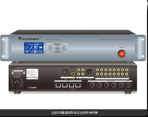 全数字同声传译翻译台RX-E9208采用全数字音频解码及数字音频压缩技术,输出音质接近CD级音质,可同时进行8种同声传译及监听功能。采用雷蒙独创的全数字会议技术,符合IEC60914国际标准,可以预设5路输入语种通道及3路翻译音源输出通道快捷键,内置IC卡读卡器,支持身份识别等功能。