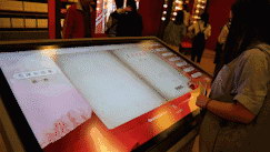 依托于全球领先的裸眼3D与大屏触控等核心技术,以及3D产业化与内容创意能力,康得新创造性地将“智能显示实时交互”解决方案应用于马克思主义学习教育中。在展现马克思经典着作《资本论》时,康得新用65寸大屏触控与85寸裸眼3D显示屏进行双屏互动,将《资本论》以3D方式展出,参观者可从多角度观摩书籍外表细节,也可手触翻看阅读章节内容。同时还通过触控大屏展示了《毛泽东选集》着作,以及“社会主义革命、建设、改革的伟大成就”,“革命烈士生平事迹”等主题内容。值得一提的是,现场还有基于大屏触控的马克思主义“有奖问答”,生动而有趣,观众排起长队争相参与。