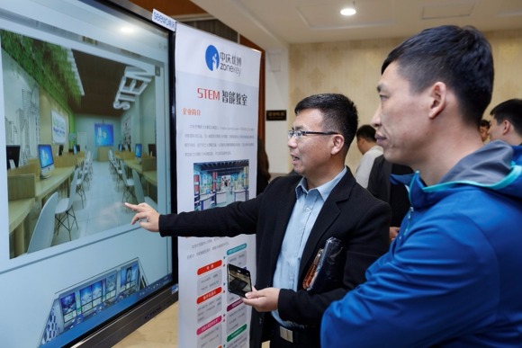 中庆优博STEM教育整体解决方案,深入课程体系建设,着重培养孩子创造力和综合素养,吸引了众多教育装备领导和学校校长来参观咨询。