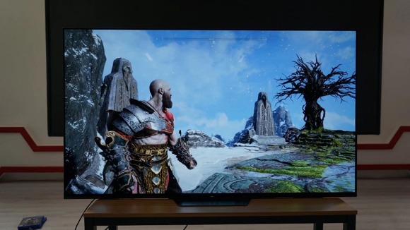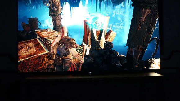 下面才是重点,就像去年我们一定会拿《地平线:零之曙光》来测试索尼A1一样,针对索尼A8F,我们直接用上了PS4平台顶级看家游戏新《战神》来实测,使用的主机当然是第一时间到手的索尼新《战神》限定版PS4 Pro。