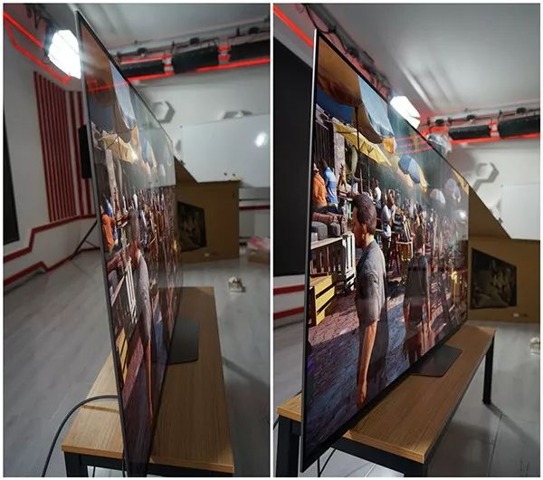 作为客厅级中心设备,电视的可视角度也是一个非常重要的指标,我们专门针对此项进行了进一步的测试,但其实从索尼A1系列的经验来看,OLED屏在可视角度上根本不存在什么可以钻空子的缺陷,下面是我们刁钻的实测实拍: