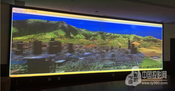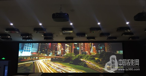 系统特点:单台投影机屏前照度1103Lux,整屏分辨率2364*800,投距6.41米-8.97米,融合带约为15.3%。