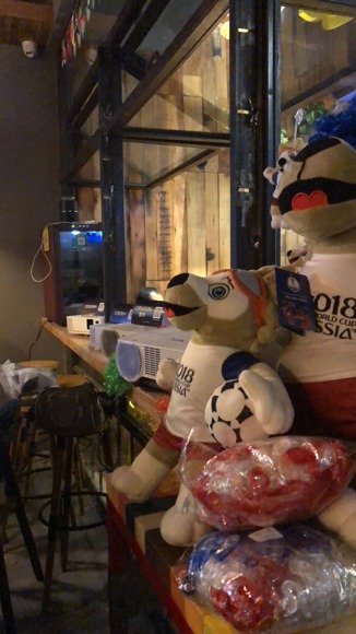酒吧门前的世界杯元素也很是吸引路人,路过地人群都好奇的前来观望活动主题。西安球迷最热情,“NEC球迷之夜”活动将会带给网友们不一样的快乐,活动现场不但准备了多组有趣的游戏,还有很多奖品等候着大家。