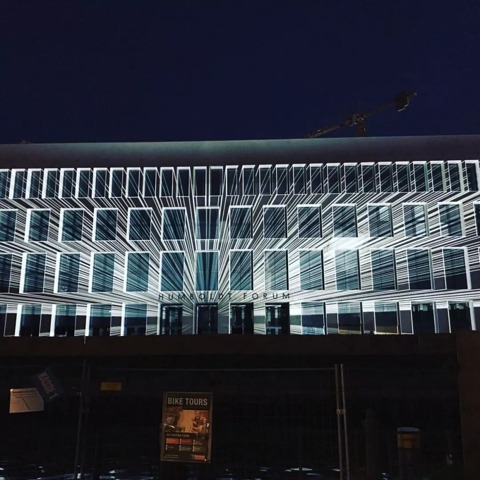 Chan Sook Choi利用中国古代《易经》的普世学说,探索柏林宫殿遗址的能量流。她将现场释放的阴阳与金木水火土五大元素的能量转化为数字算法,然后借助129,600光子的电磁运动,用科视Christie潘多拉魔盒将不断变化的复杂符号流投射到宫殿的东立面。整个立面宽120米,符号流垂直、水平和圆圈状移动使整个投影屏幕达3000平米。精妙绝伦的投影画面完美展现了亚洲人视角中柏林宫殿的变迁。