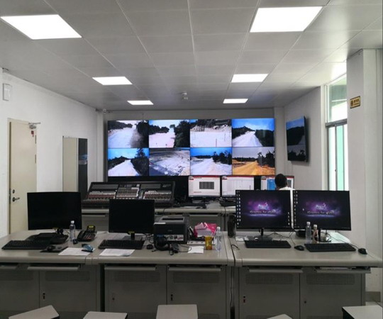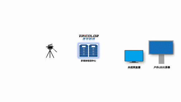 实现多媒体信息资源互联互通:采用分布式传输+集中式处理架构。分散在赛事现场十公里内的200来个摄像机和网络摄像头,通过光纤及网络方式将高清视频及音频信息传输至指挥控制中心的“多媒体枢纽双中心“,经过图像处理后再通过光纤输送至显示大屏和各接收端。同时随路音视频同步切换技术,保证前方采集的视频信息与音频信息同步切换,实现观礼台、导播室、央视直播间等区域的多媒体信息音视频同步。