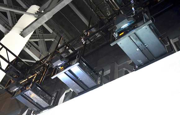 三台PX1004UL-BK+配合超短焦镜头,拼融创造亮丽大画面。