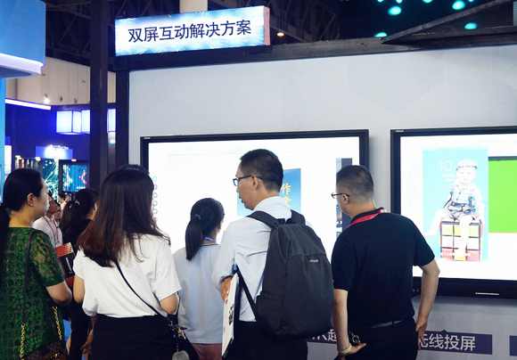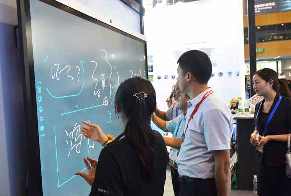 鸿合展位精彩展项吸引众多观众交流、体验