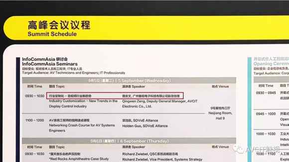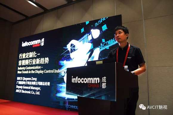 AVCiT魅视副总经理曾庆文先生作为行业知名品牌企业家、意见领袖,受到了InfoComm主办方特邀出席本届成都InfoComm高峰会首场论坛会议——InfoCommAsia Seminars研讨会,并做了《行业定制化-音视频行业新趋势》主题演讲。
