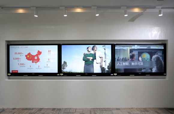 另外3台ICB-N75P和1台ICB-VN75独立放置,分别展现不同的技术与方案主题内容,4K画面清晰明亮易于观看,讲解人员可流畅顺滑地批注书写,并将内容快捷分享给每个宾客;此外,新信息与新资料,无论视频、图片还是文档,均可用手机或笔记本电脑无线投屏,在大屏幕上分享,实现卓有成效的交流探讨。