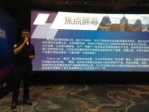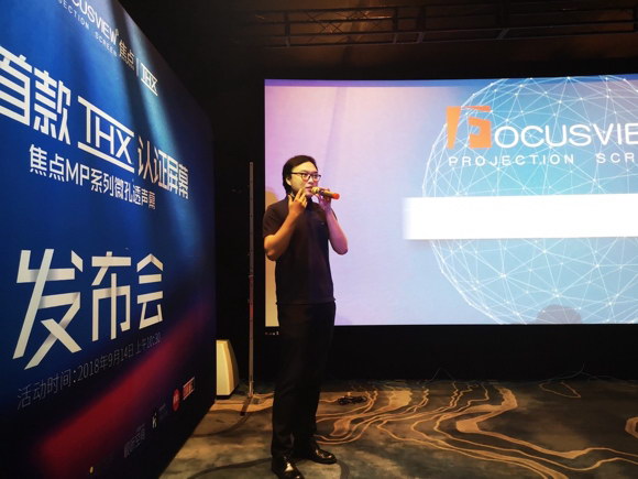在发布会上,深圳焦点伟业科技有限公司总经理俞宇先生致开场词。为到场来宾介绍公司从成立到至今的发展。俞总表示:“焦点屏幕从2008年在深圳开始研发,从成立开始就注重技术研发,可以说是屏幕行业注重技术研发的引领者品牌。这次重磅推出的焦点屏幕MP系列微孔透声幕,就是最有力的证据,作为中国首款正式通过美国THX公司认证的投影幕,我们很自豪,能够给行业及用户带来好的产品,这是焦点屏幕一直想要做的。”