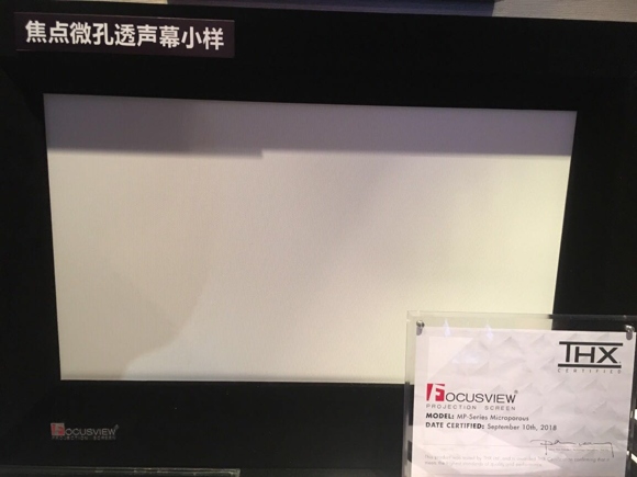 在本次广州国际音响唱片展上,焦点屏幕给业界人士展示中国首款获得THX认证的的焦点MP系列微孔透声幕