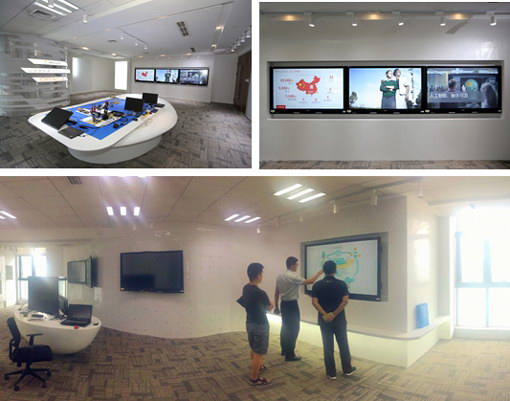 另外3台ICB-N75P和1台ICB-VN75独立放置,分别展现不同的技术与方案主题内容,4K画面清晰明亮易于观看,讲解人员可流畅顺滑地批注书写,并将内容快捷分享给每个宾客;此外,新信息与新资料,无论视频、图片还是文档,均可用手机或笔记本电脑无线投屏,在大屏幕上分享,实现卓有成效的交流探讨。