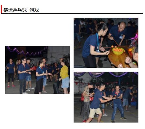 1、分成三组进行比赛,每一组分别用筷子把乒乓球夹到各自的盘里,队员如此类推的将队友的乒乓球夹到另外一位队友的盘里,在3分钟内完成,最后看哪组盘里乒乓球少,哪组就要接受酸橘子惩罚;