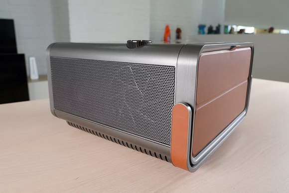 后面是优派X10-4K的点睛之笔,一整块的皮质磁吸式保护盖,不仅可以隐藏后侧的众多接口,更是加强了后侧的一体性。暗黄色的皮革也有了几分不一样的质感,摸上去的那瞬间,完全没有金属冷冰冰的触感。