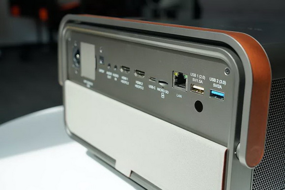 优派X10-4K接口丰富,除了传统的音频输入、输出口,两个HDMI接口,MICRO SD,两个USB-A接口外,还有目前主流的USB-C口,C口可以兼容目前的手机、平板、Swtiich等移动设备。除此之外,优派X10-4K的网络连接即可有线也可无线,分别满足不同的使用场景。无线网卡是外置可更换的USB网卡,这也是方便后续的升级。