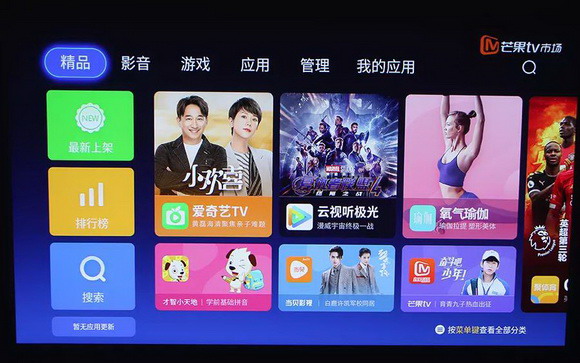 在内容上,优派与多家视频供应商合作,目前主流的平台像优酷、爱奇艺、芒果TV都有合作,资源整合的还不错。系统点击之后一键跳转,也不用在一个个视频App里面单独的找片子了,省下了不少功夫。