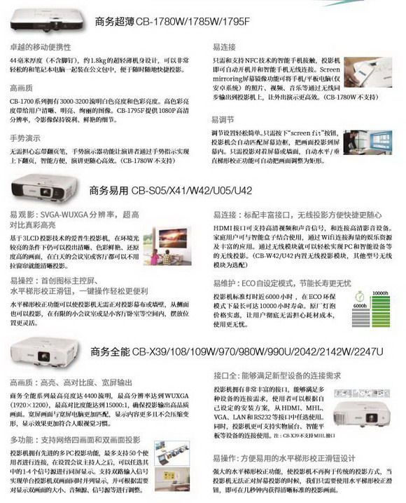 爱普生公司研制成功世界上第一块LCD液晶板,成为第一家掌握此投影机关键技术的厂家,并制造出世界上第一台液晶投影机VJP-2000,开创了液晶投影机的新时代。90年代后期,爱普生公司依靠先进的LCD投影技术,成为世界市场上领先的液晶投影机生产商和LCD液晶板供应商。1994年,爱普生投影机正式进入中国市场。由于爱普生投影机的优秀品质及出众表现,荣获国内众多媒介的评测大奖和广大用户的青睐。为满足不同用户的需要,我们不断地有新产品适时发布,全年保持完整产品线;并向国内销售的投影机提供整机两年,灯泡半年的维修服务,在中国地区建立专业配件保税仓库及维修中心和各地服务站,用户售后服务体系已经成熟,解决了用户的后顾之忧。