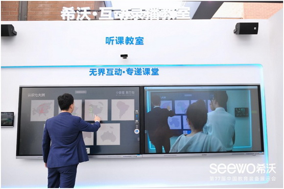 10月12日,在第77届中国教育装备展示会上,“千呼万唤始出来”的希沃交互智能录播全新发布,终于揭开了神秘的面纱。远程互动助手、AI裸眼透视等新应用、新技术一经亮相,立即引爆希沃互动录播教室展区。