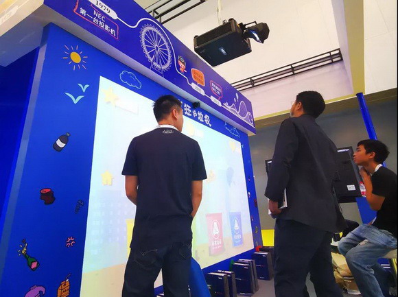 2019中国(上海)国际游乐设施设备博览会上,鸿合科技代理的NEC旗下北极星、绿洲、空灵、女王等全系列工程投影机打造众多互动娱乐展项,将前沿显示技术与游乐场景相结合,吸引了众多展会观众及嘉宾踊跃体验。