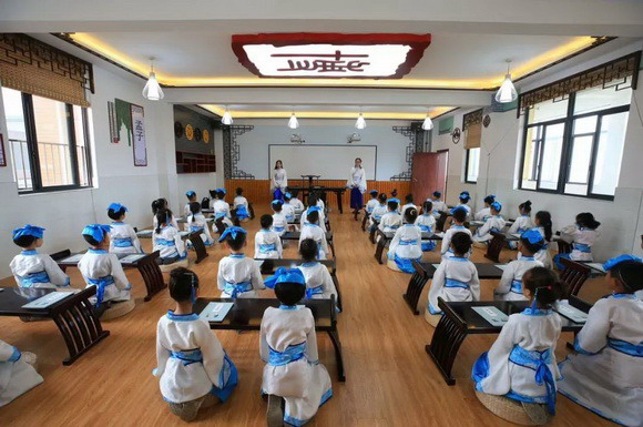 宜兴市高塍实验小学是原国家教育部部长蒋南翔、台湾大学校长虞兆中的母校。学校采用羿飞教育的建设方案,打造数字国学馆,包含数字化国学专用教室、翰墨派数字书法专用教室、情境式沉浸(CAVE)空间、全息梦幻舞台等项目。