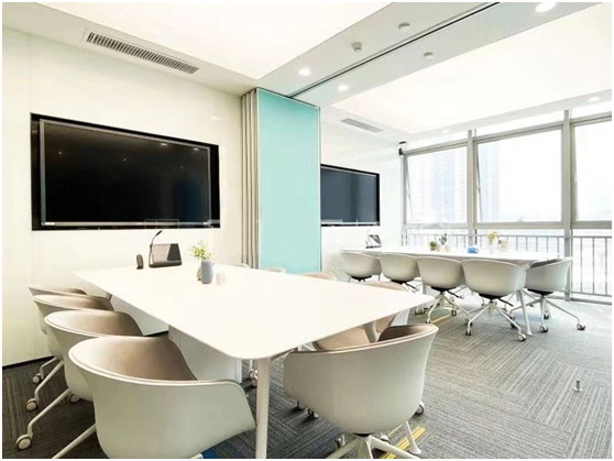 在中盈地产的智慧办公空间中,视频会议室使用率很高,这里很多企业的分公司或办事处,需要频繁使用远程会议功能;此外,很多创业公司同样需要视频会议与国外投资人或客户进行洽谈。newline会议平板颠覆了过去会议室概念,以All In One理念一体化方案取代了投影、音响等零散设备和繁复连接,所有功能高度整合,大幅提高空间使用率。