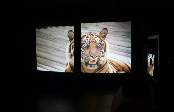 左侧为0增益白幕,右侧为2.4增益金属银幕