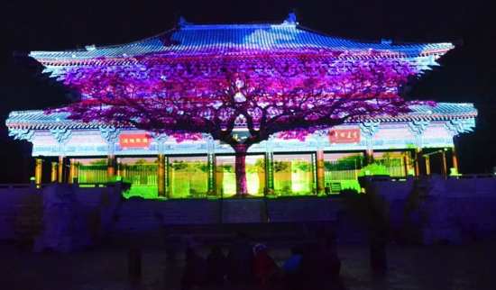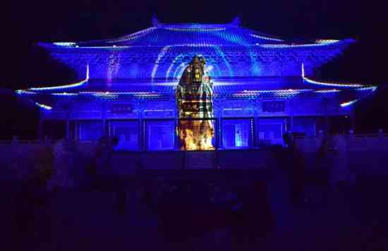 台达旗下投影品牌Vivitek(丽讯)联手华中区代理商河南省哲浩电子技术有限公司,通过4台激光工程投影机DU9800Z,完美演绎了位于太清宫三清殿前的大型古建楼体3D激光光影秀《老子不老》。