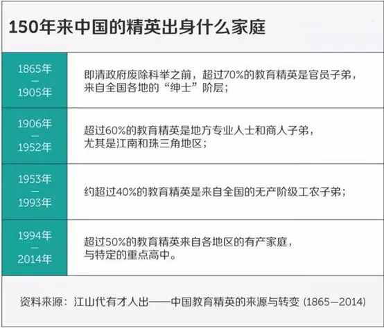 从1980年至2015年间,有近30%的城镇人口接受了全日制大学教育,而农村人只有约12%;1990年时,中国高等院校中农村学生的比例还是22.11%,2010年时已经下降到了8.12%,从2010年起,中国高等院校中城乡学生的比例依旧不尽人意。
