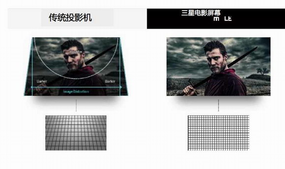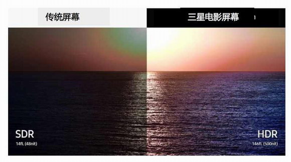 三星Onyx融入了HDR(高动态范围图像)的技术,同时可调节的屏幕亮度高达146fL(500nit),相当于传统投影设备的10倍,在3D眼镜下也能让人眼前一亮,并且避免了图像均匀性差和画面失真等问题,能够在峰值亮度下呈现完美的色彩准确度(DCI-P3色域),高度还原真实环境的色彩,其鲜明的对比度也能进一步增强影片的质感。