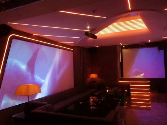 激光投影系统带来的“光影变化”,提供了KTV行业至少两大革新价值点:第一,激光大屏为KTV包房提供更大的融入式显示体验;第二,用激光投影实现的装潢文化风格和主题的变化,仅仅依赖于数字内容的创新,极大的增强了KTV体验氛围的多变性。