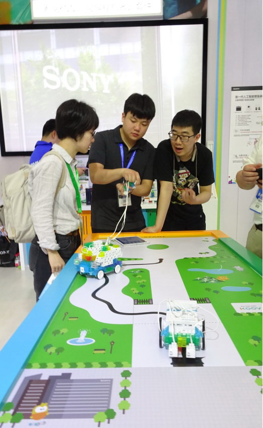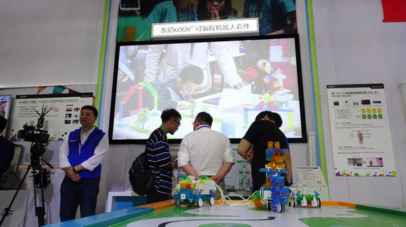 本次展会还特别开设了KOOV®可编程教育机器人公开课,现场介绍、展示KOOV教育机器人在教学中的应用。作为一款教育产品,KOOV教育机器人套件秉承寓教于乐的宗旨,鼓励孩子通过创意与科技的结合动手拓展想象力。它包括色彩缤纷的拼插模块、设计简洁的电子元件以及专属应用程序。
