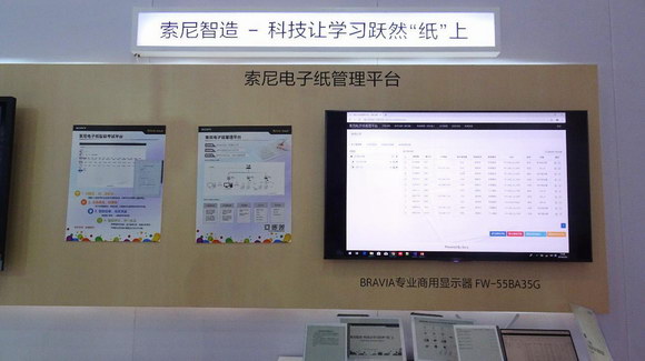 索尼电子纸管理平台是索尼针对中国市场研发的一套行业解决方案:用户可以轻松、便捷的管理几十甚至几百台电子纸设备,并可与各种业务系统进行快速集成,广泛适用于教育、办公、会议等多种场景。本届展会,索尼电子纸管理平台的标准版及智能考试版精彩亮相。