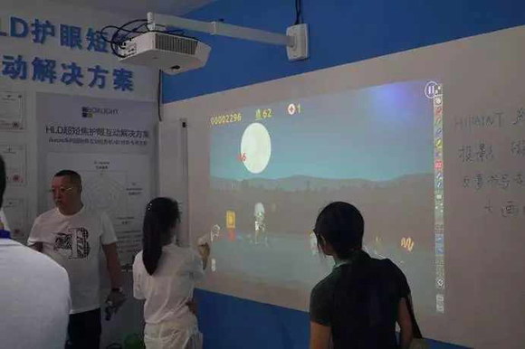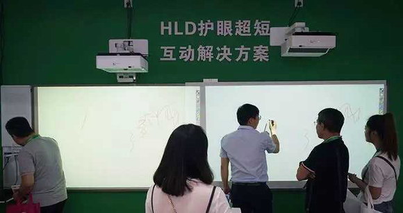 本届展会亮点——全球首台HLD短焦互动投影机新品Aurora S2i短焦互动系列,体积小巧,互动流畅,适合教室环境。