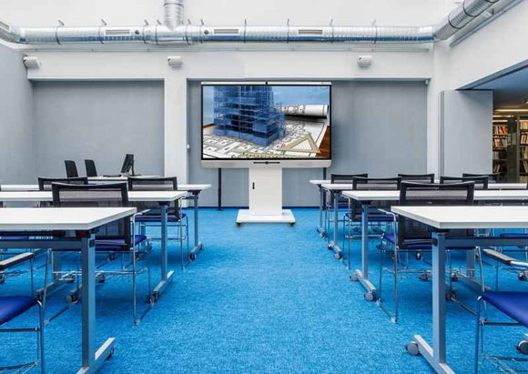 华盛顿大学建筑环境学院的项目课题繁多,建有许多适合小组讨论的12人座会议室,在这里,newline实现了出色的远程会议与多样资料呈现,甚至还可网络面试。“All in one”设计将摄像头、MIC、扬声器等整合于一身,独特的开放平台可无缝应用Skype、WebEx等视频会议软件,从安装到操作都十分简单。