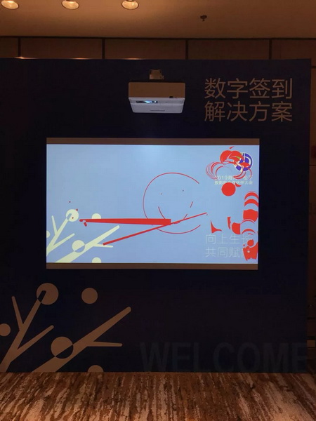 以短焦和F系列共同打造的沉浸式餐厅解决方案,则体现了目前短焦投影机的重要商用市场新应用和新趋势。大会主场舞台背景是采用6台松下F系列高端液晶投影机融合叠加打造的大屏幕显示解决方案,松下产品的实力得以全面展示,也为到场用户代表提供了眼见为实的亲身感受。