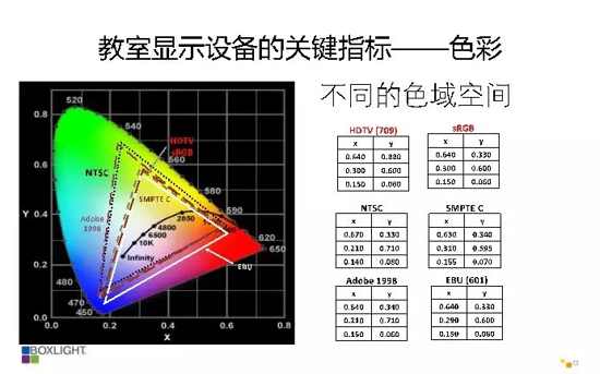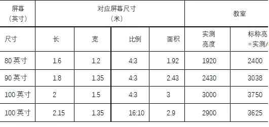 明亮的教室显示设备亮度要求:1000流明/平方米。