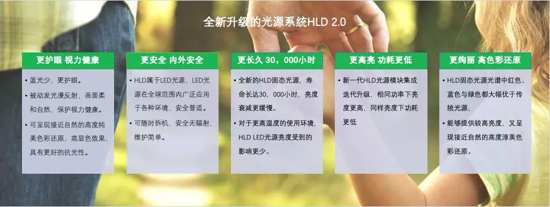 •安全:优选安全无辐射、蓝光能量低的HLD固态光源