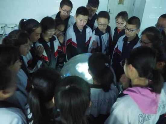 好的开始是成功的一半,一堂课能否在一开始就抓住学生的心很大程度上就决定了这堂课的成效。羿飞在课程导入上下足功夫,通过环幕示教系统、天文演示仪,以兴趣为导,开启整堂课。
