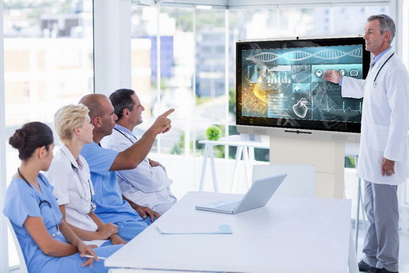在PruittHealth的会议室中,newline让护士与医师沟通更为顺畅,讨论某个客户的近况时,资料清晰显示在屏幕上,医师用手指直接勾画重点信息,并进行标注讲解;护士则可以分享日常工作情况,手机或平板电脑中的照片等资料可随时推送至大屏,会上与医师探讨;讨论成果与全新想法均可随时开启newline协同白板功能进行记录,方便会后保存与分享。